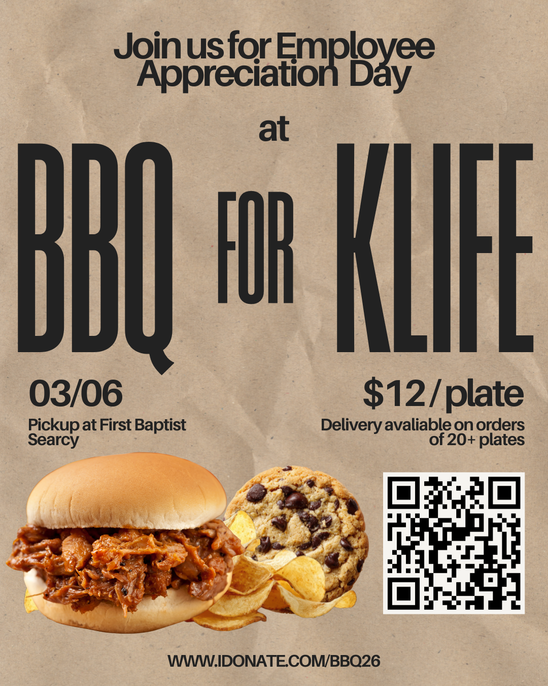 Join us for Employee Appreciation Day and our Annual BBQ Fundraiser to help support KLIFE here in Searcy!